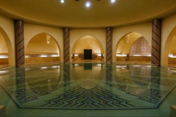 Érigée en partie sur la mer, et aménagée sur neuf hectares, la Mosquée Hassan II est en toute évidence un complexe religieux, mais surtout un espace culturel comportant plusieurs salles destinées aux prières ainsi qu’aux ablutions, et une école coranique, une bibliothèque et un musée… Derniers nouveaux nés de ce complexe: Des hammams pour hommes et femmes situées au-dessous de la magnifique esplanade de la Mosquée Hassan II et occupant une superficie de 3000 m² chacun. Des bains maures et des bains de santé, « modernes équipés d’animations aquatiques ».